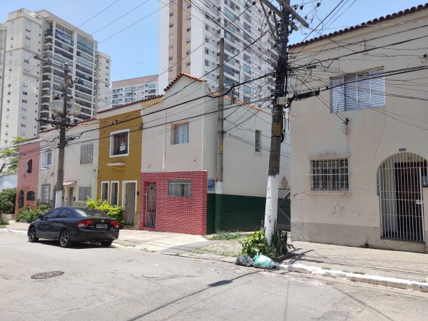 Vista para as casas da Rua Tenente Azevedo na altura do número 252 em uma tarde ensolarada.