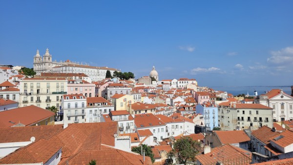 Miradouro de Santa Luzia com vista para o Rio Tejo, Mosteiro de São Vicente de Fora e casas